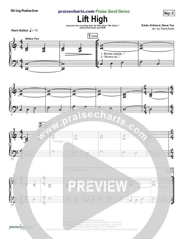 Download the Orchestration for Lift High by FEE Band, from the album We Shine. This song was arranged by Frank Ralls in the key of C, Eb.