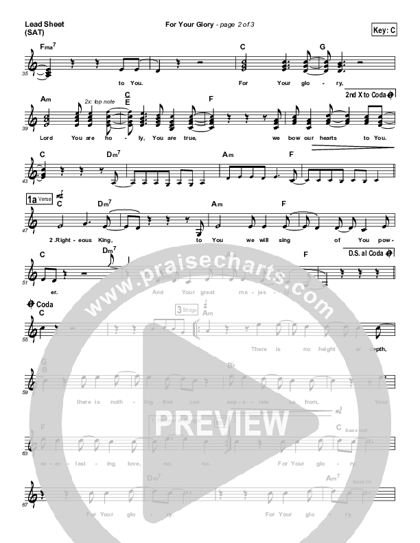 Download the sheet music for For Your Glory by Joel Engle, from the album I Believe In You. This song was arranged by Kevin Eng in the key of C, D.