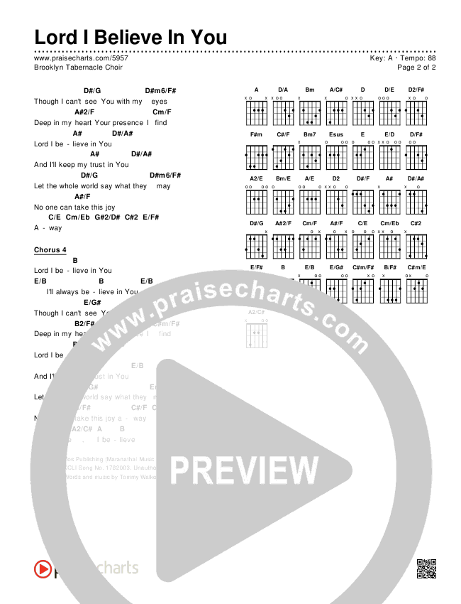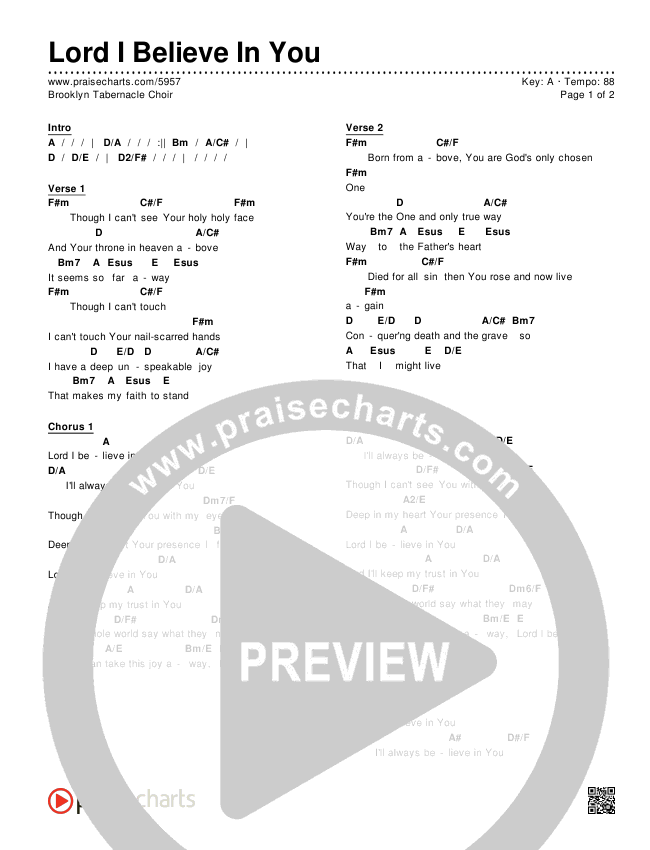 Lord I Believe In You Chords PDF (Songs of Brooklyn Tabernacle Choir (PraiseCharts Edition))
