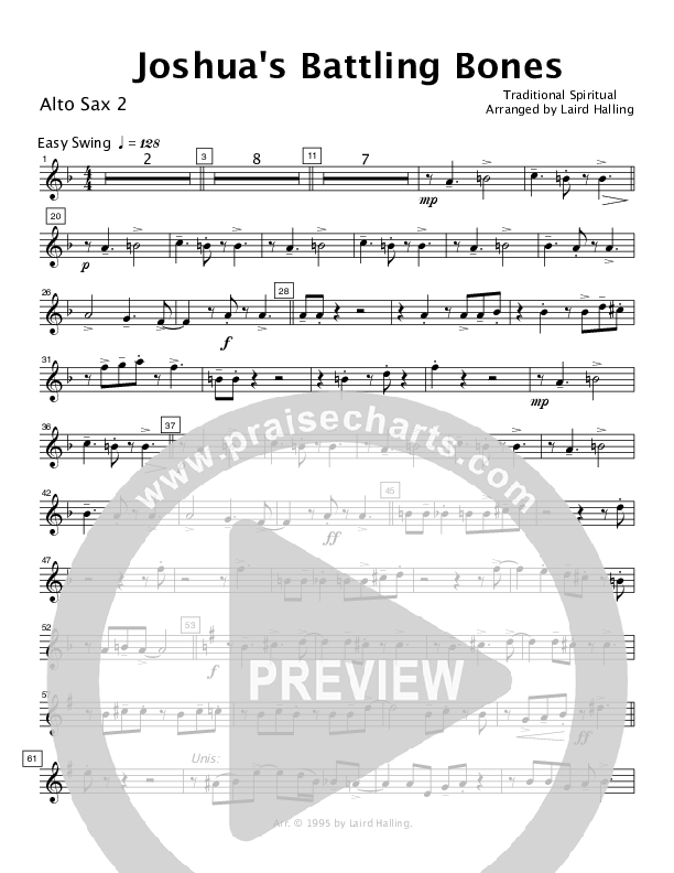 Joshua's Battling Bones (Instrumental) Alto Sax Sheet Music PDF (Crosswinds Big Band)