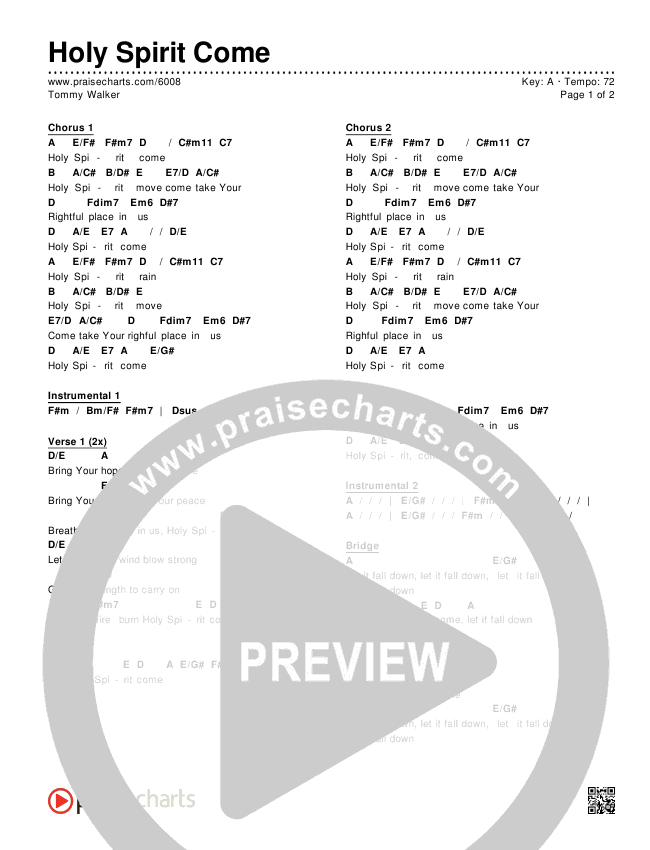 Holy Spirit Come Chords PDF (Tommy Walker)