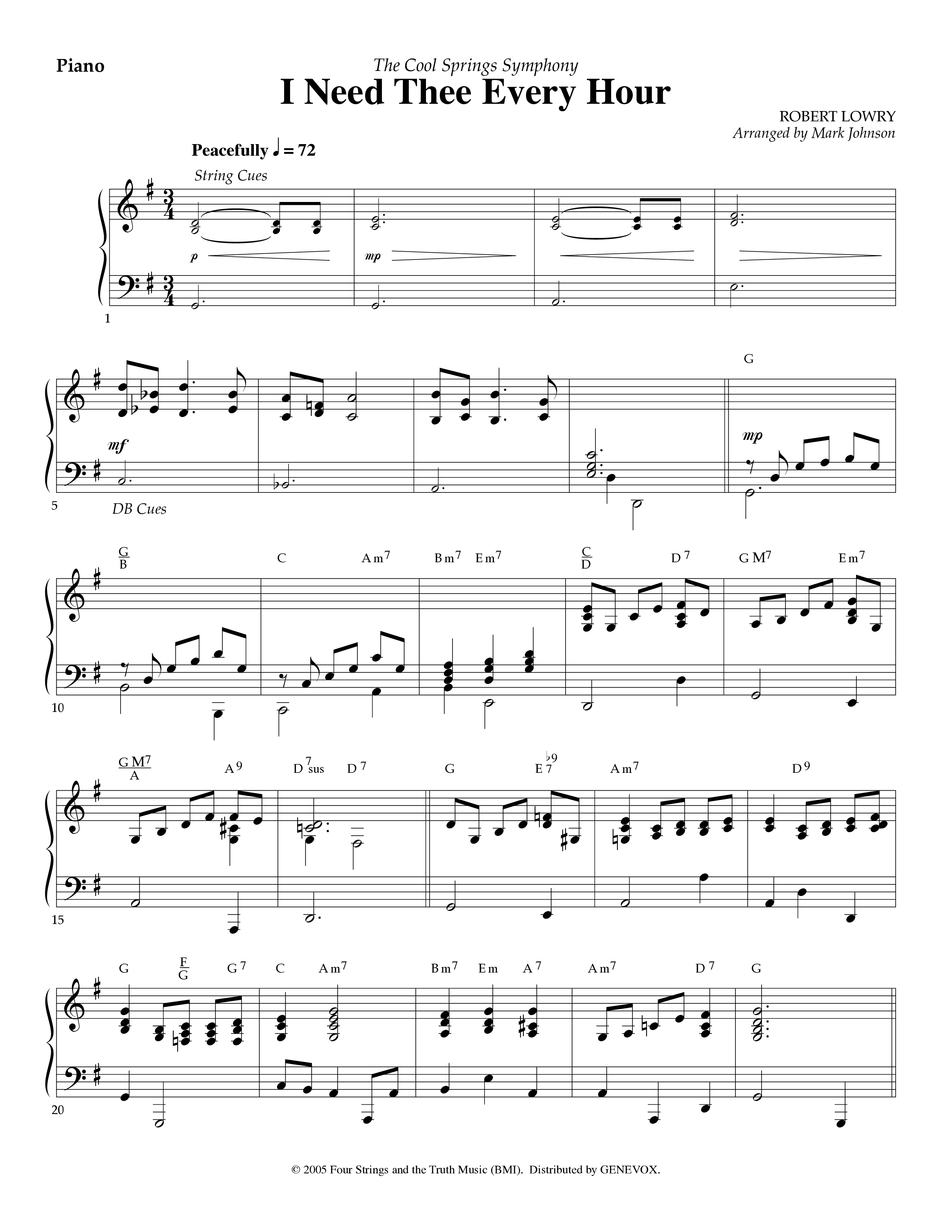Download the Orchestration for I Need Thee Every Hour (Instrumental) by Lifeway Worship / Arr. Mark Johnson, from the album Cool Springs Symphony Series. This song was arranged by Mark Johnson in the key of G.