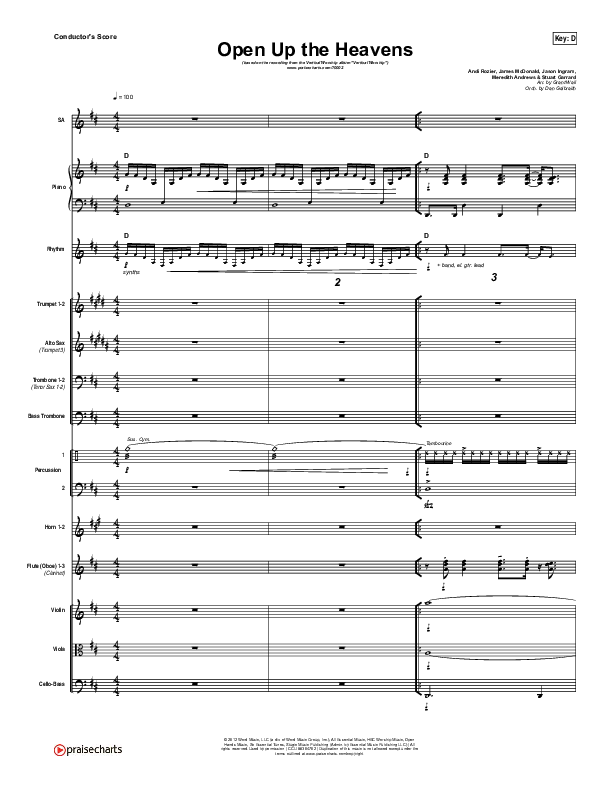 Download the Orchestration for Open Up The Heavens by Vertical Worship, from the album Vertical Worship. This song was arranged by Grant Wall / Daniel Galbraith in the key of C, D.