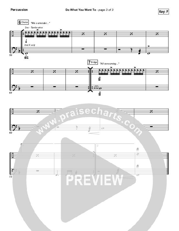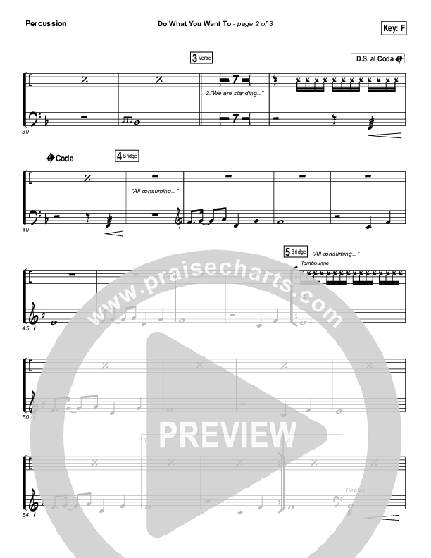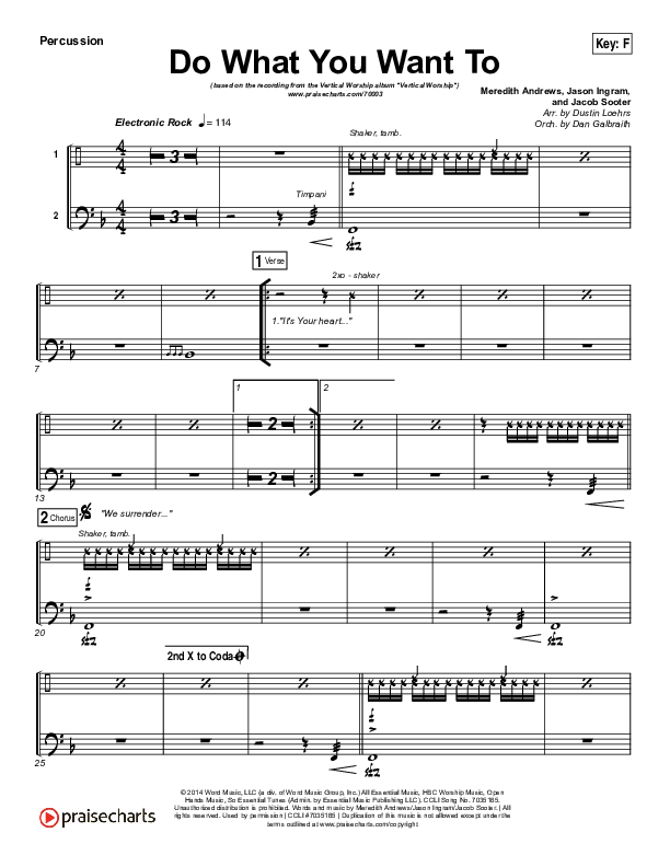 Download the percussion sheet music for Do What You Want To by Vertical Worship, from the album Vertical Worship. This song was arranged by Daniel Galbraith in the key of F, G.