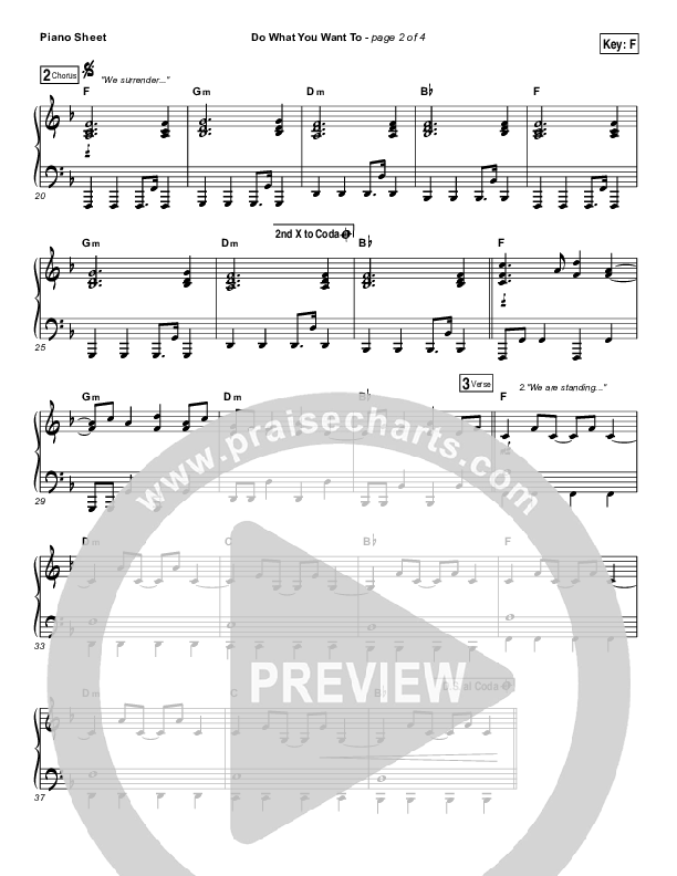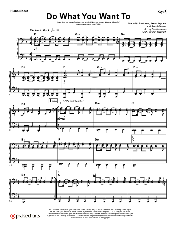 Download the piano sheet for Do What You Want To by Vertical Worship, from the album Vertical Worship. This song was arranged by Daniel Galbraith in the key of F, G.