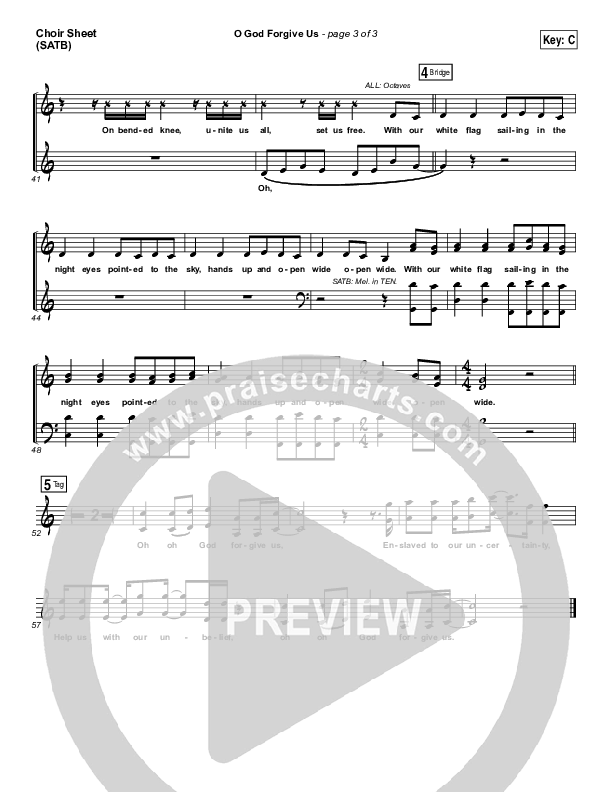 Download the Choir Sheet for O God Forgive Us by for KING & COUNTRY / KB, from the album Run Wild Live Free. This song was arranged by Dustin Loehrs / Daniel Galbraith in the key of Bb, C.
