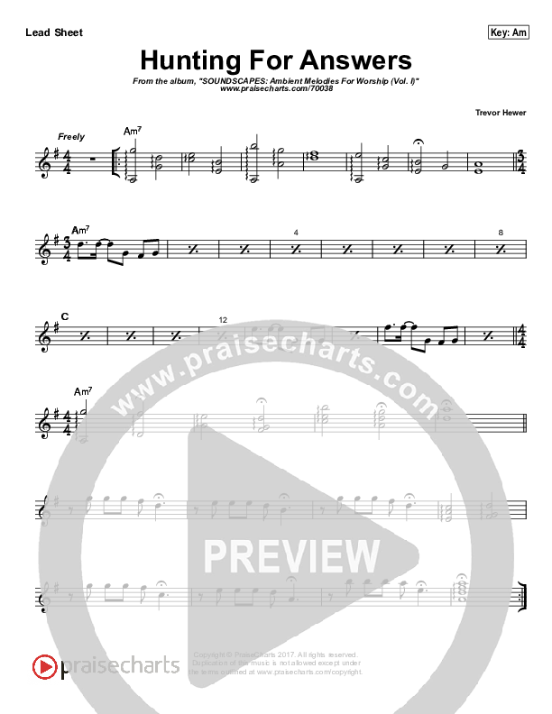Download the sheet music for Hunting For Answers by PraiseCharts, from the album Soundscapes: Ambient Melodies For Worship Vol. 1. This song was arranged by Trevor Hewer in the key of Am, Bbm, Bm, C#m, Cm, Dm, Ebm, Em, F#m, Fm, G#m, Gm.