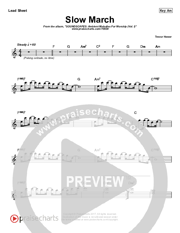 Download the sheet music for Slow March by PraiseCharts, from the album Soundscapes: Ambient Melodies For Worship Vol. 1. This song was arranged by Trevor Hewer in the key of Am, Bbm, Bm, C#m, Cm, Dm, Ebm, Em, F#m, Fm, G#m, Gm.