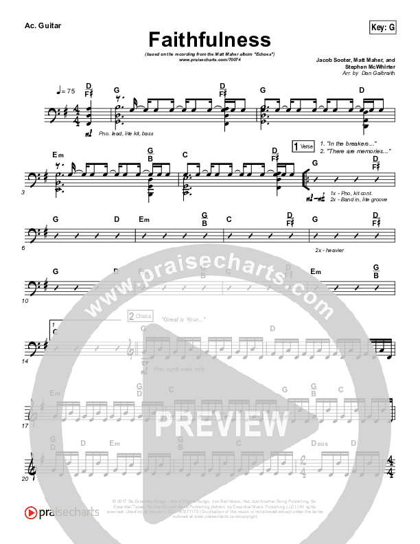 Faithfulness Sheet Music PDF (Matt Maher / Iron Bell Music)