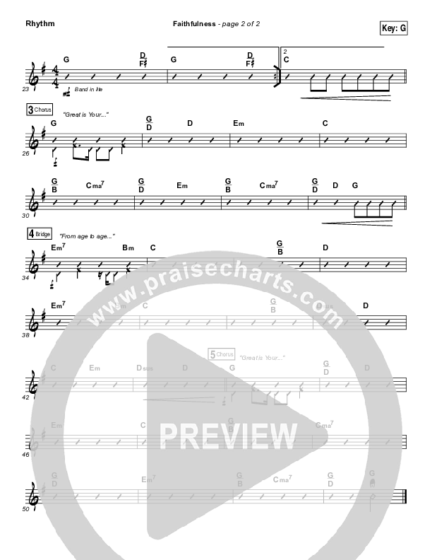 Download the Rhythm Chart for Faithfulness by Matt Maher / Iron Bell Music, from the album Echoes. This song was arranged by Daniel Galbraith in the key of F, G.