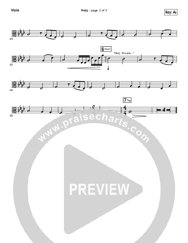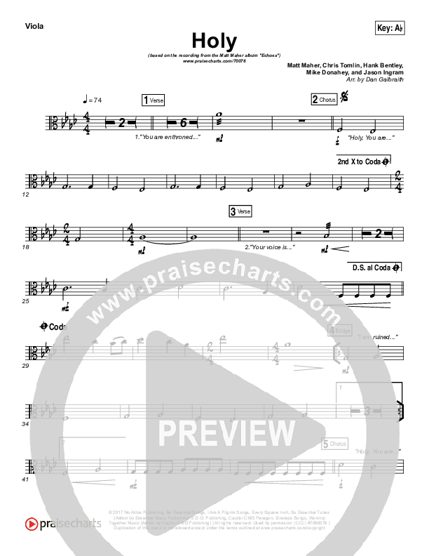 Download the Viola sheet music for Holy by Matt Maher, from the album Echoes. This song was arranged by Daniel Galbraith in the key of Ab, G.