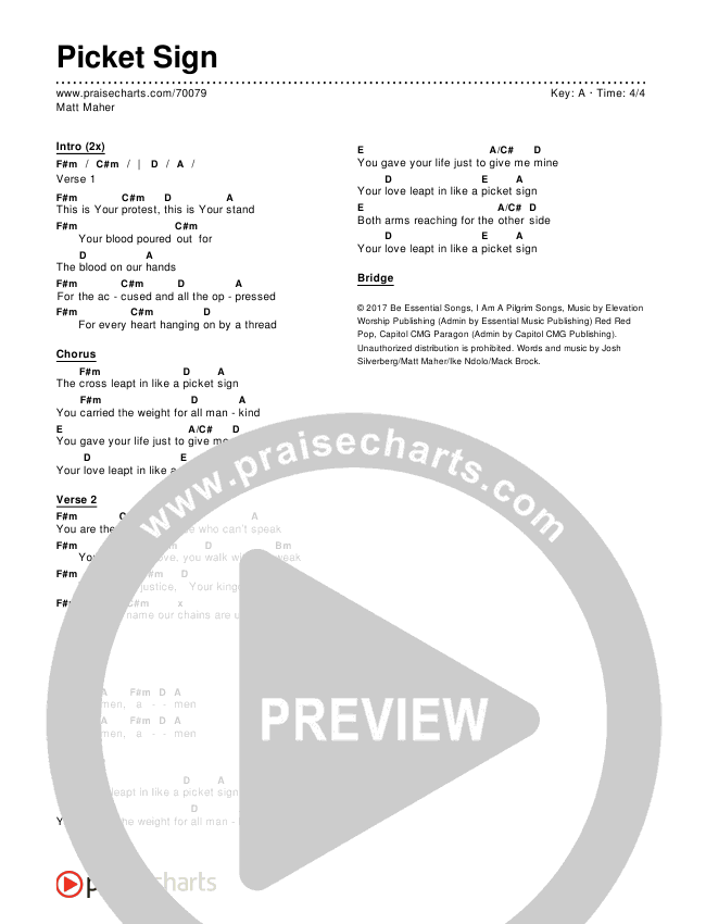 Download the PDF Chord Charts for Picket Sign by Matt Maher, from the album Echoes.