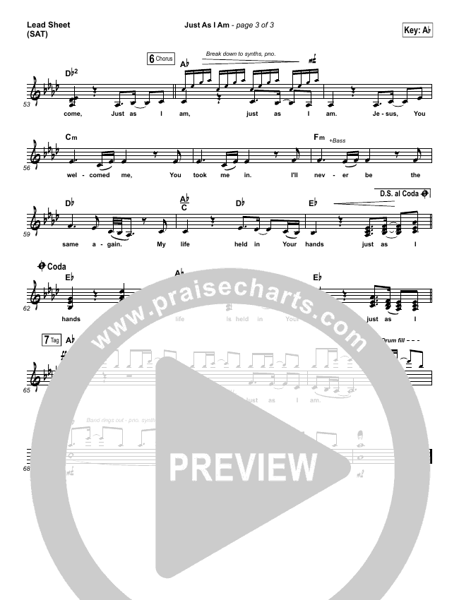 Download the sheet music for Just As I Am by Matt Maher, from the album Echoes. This song was arranged by Daniel Galbraith in the key of Ab, G.