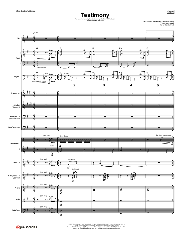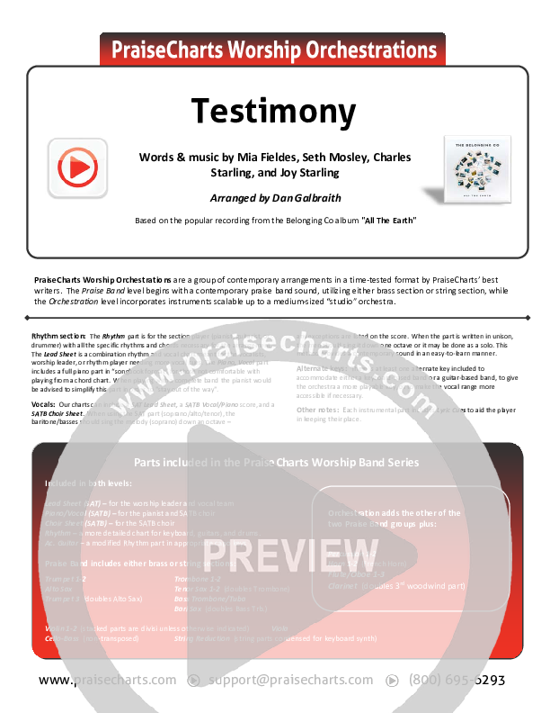 Download the Orchestration for Testimony by The Belonging Co / Cody Carnes, from the album All The Earth. This song was arranged by Daniel Galbraith in the key of Ab, G.