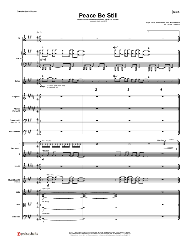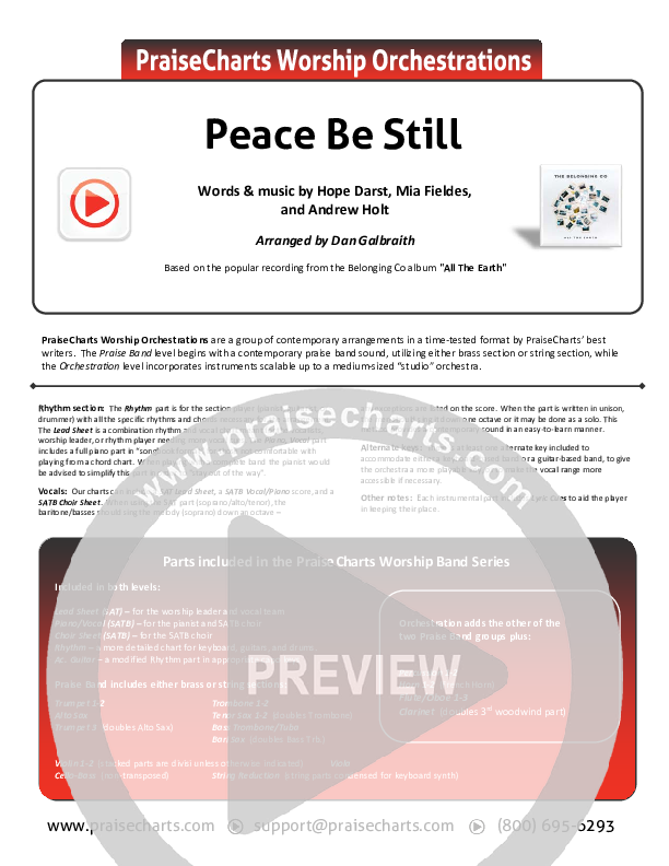 Download the Orchestration for Peace Be Still by The Belonging Co / Lauren Daigle, from the album All The Earth. This song was arranged by Daniel Galbraith in the key of A, Bb, F, G.