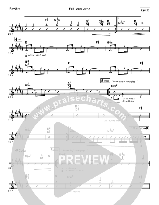 Download the Rhythm Chart for Fall by The Belonging Co / Meredith Andrews / Andrew Holt, from the album All The Earth. This song was arranged by Daniel Galbraith in the key of B, Bb.