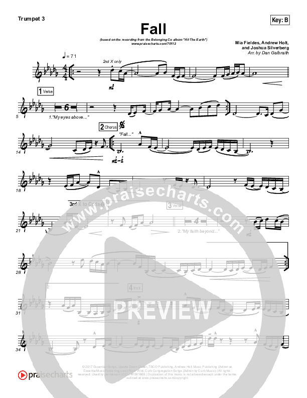 Download the Trumpet 3 sheet music for Fall by The Belonging Co / Meredith Andrews / Andrew Holt, from the album All The Earth. This song was arranged by Daniel Galbraith in the key of B, Bb.