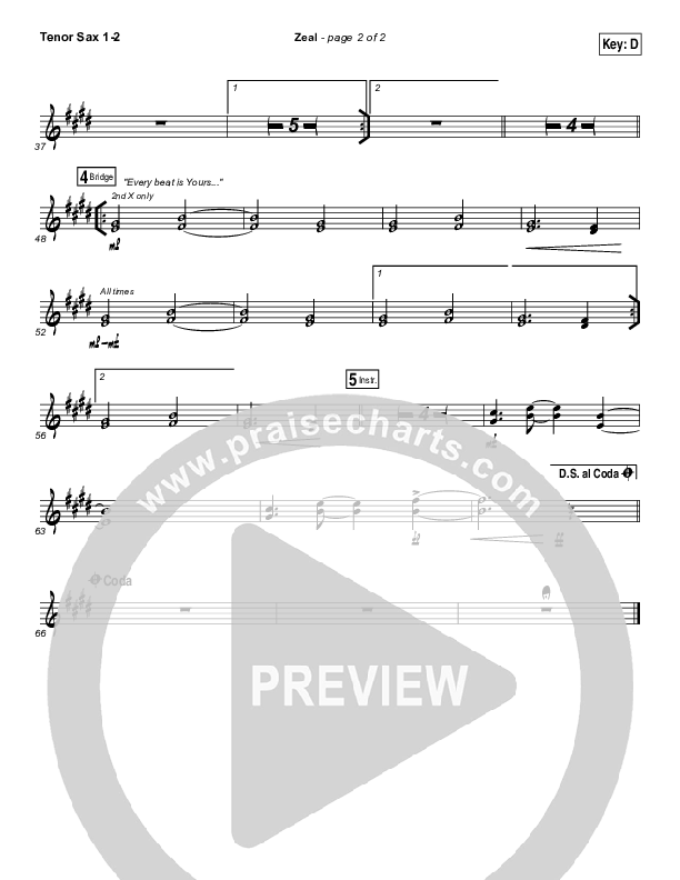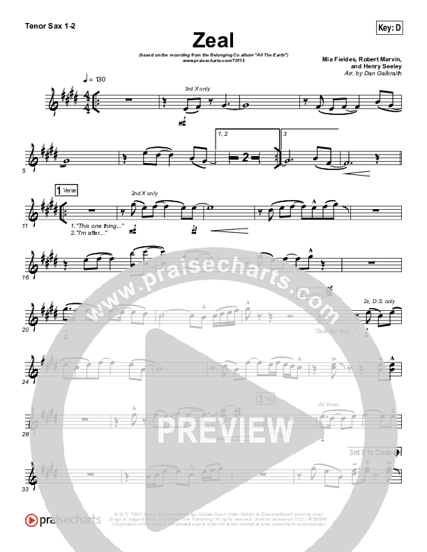 Download the Tenor Sax sheet music for Zeal (Allskate Remix) by The Belonging Co / Henry Seeley, from the album All The Earth. This song was arranged by Daniel Galbraith in the key of D, Eb.