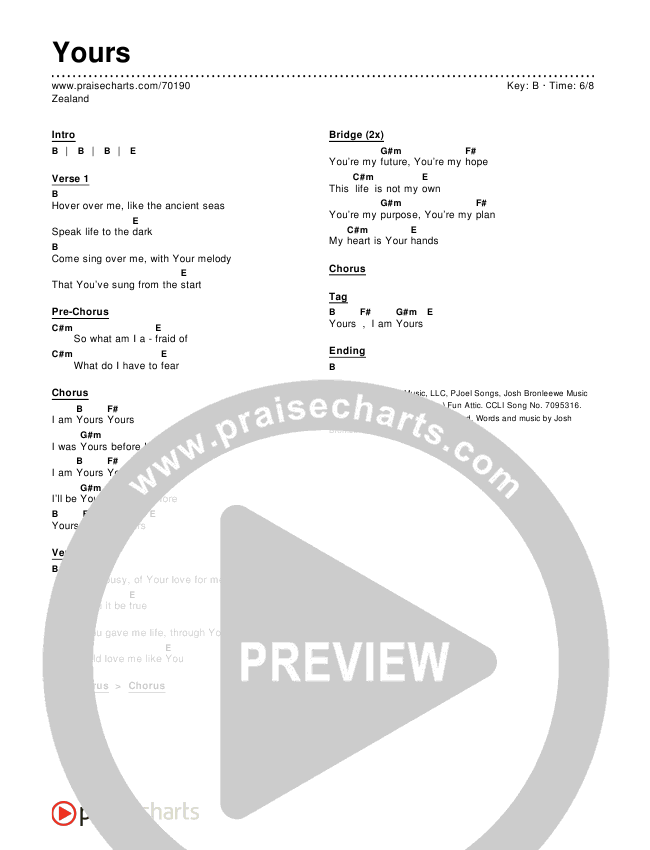 Download the PDF Chord Charts for Yours by Zealand, from the album My Utmost For His Highest.