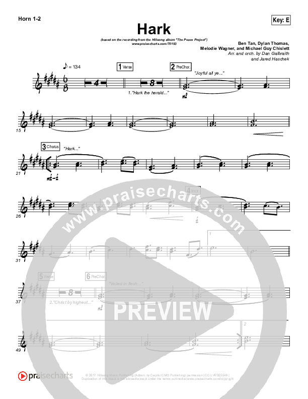 Download the Orchestration brass parts for Hark by Hillsong Worship, from the album The Peace Project. This song was arranged by Daniel Galbraith / Jared Haschek in the key of D, E, Eb.