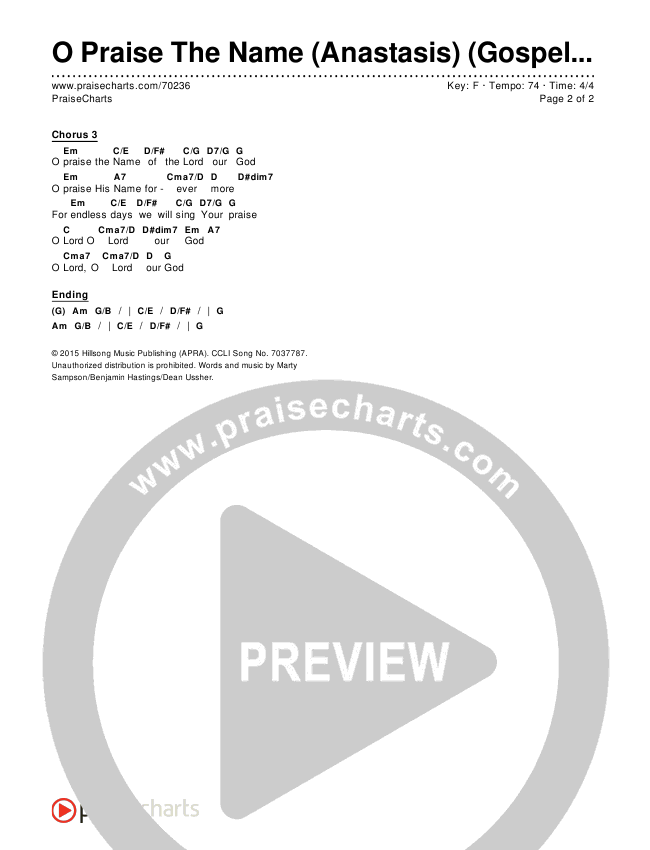 O Praise The Name (Anastasis) (Gospel) Chords PDF (PraiseCharts / PraiseCharts Gospel)