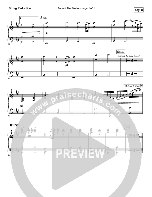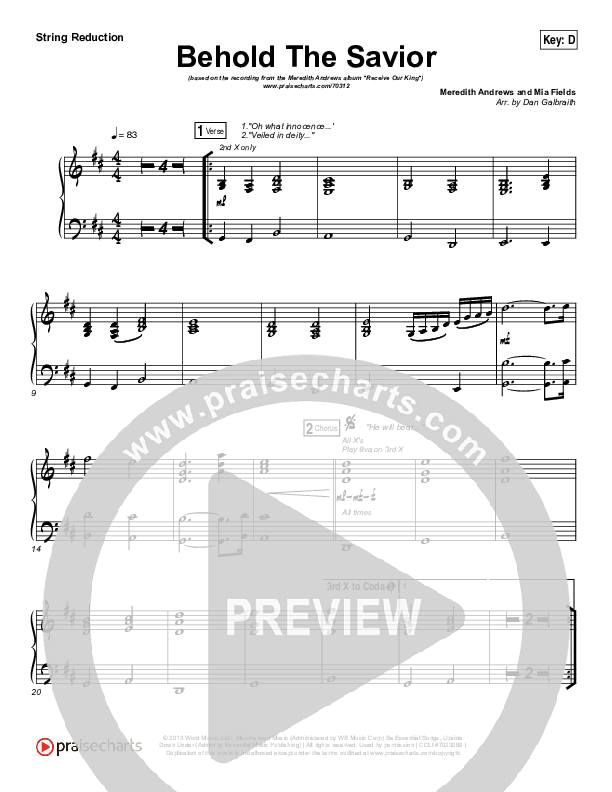 Download the Orchestration for Behold The Savior by Meredith Andrews, from the album Receive Our King. This song was arranged by Daniel Galbraith in the key of D, Eb.