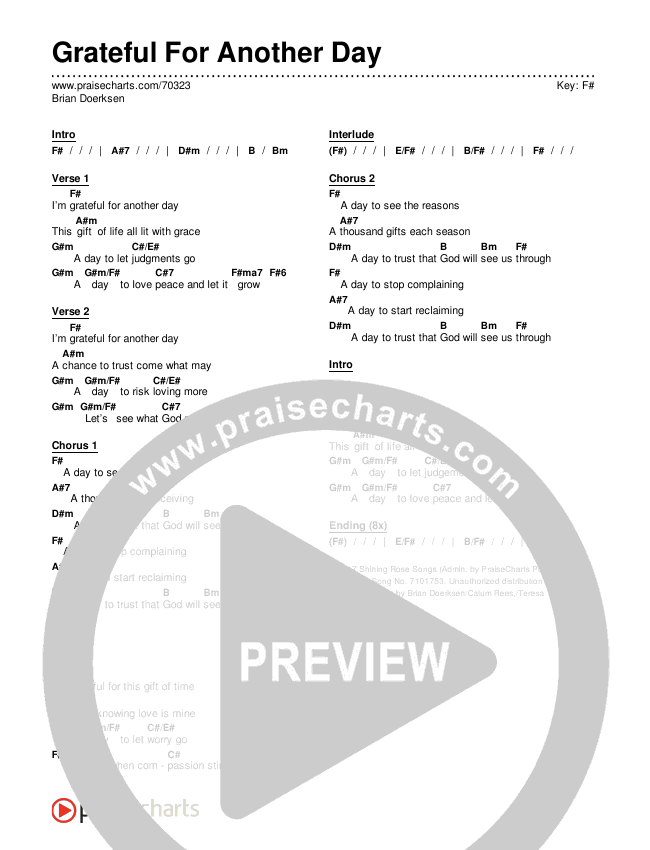 Grateful For Another Day Chords PDF (Brian Doerksen)