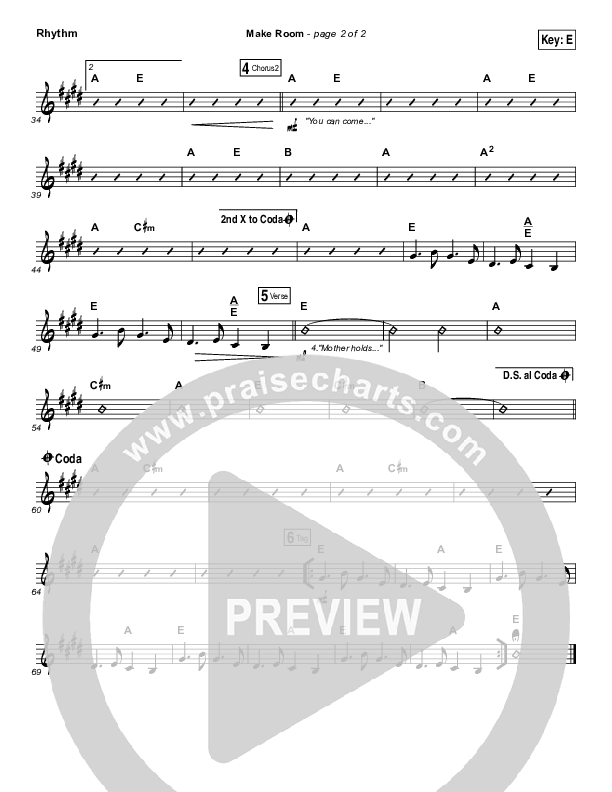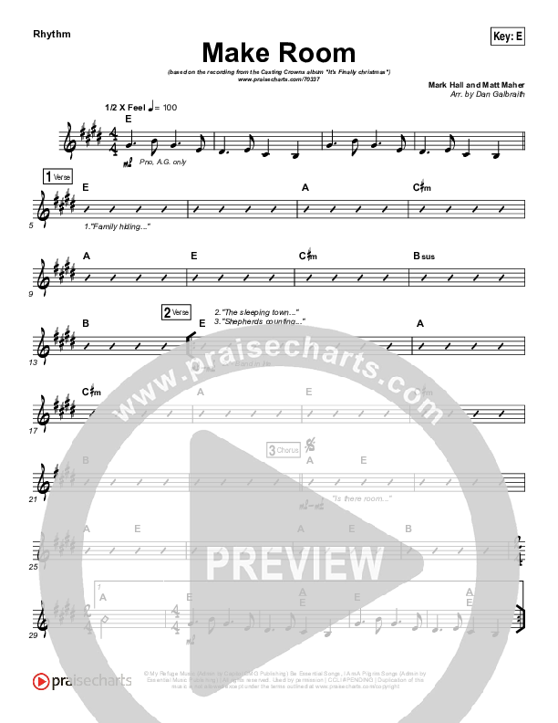 Download the Rhythm Chart for Make Room by Casting Crowns / Matt Maher, from the album It's Finally Christmas. This song was arranged by Daniel Galbraith in the key of E, Eb.