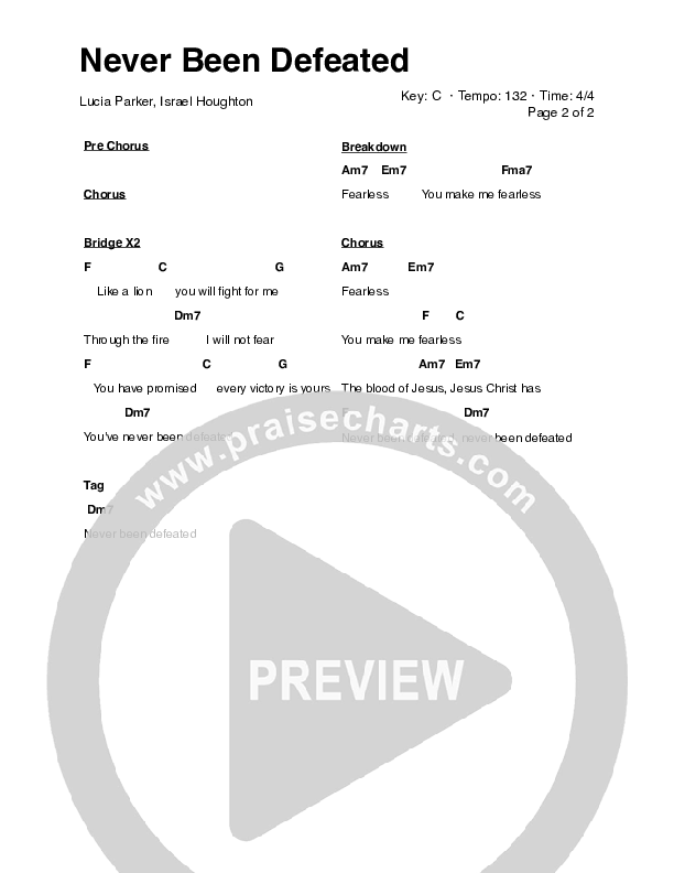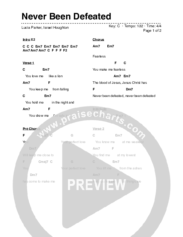 Never Been Defeated Chords PDF (Lucia Parker)