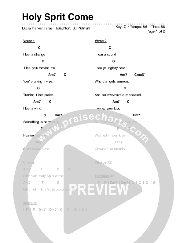 Holy Spirit Come Chords PDF (Lucia Parker)