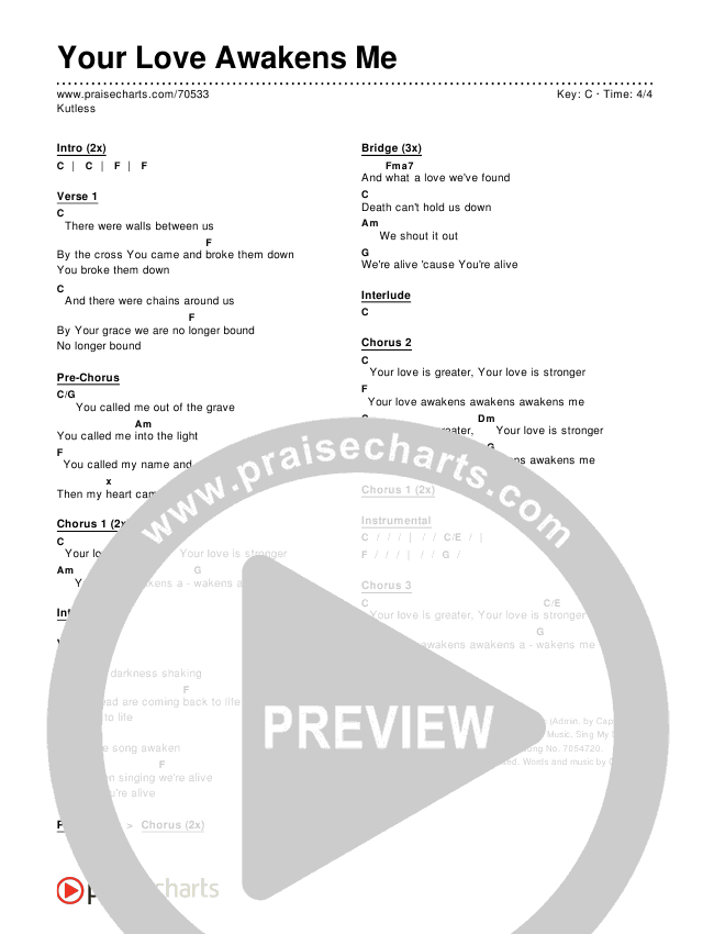 Download the PDF Chord Charts for Your Love Awakens Me by Kutless, from the album Alpha / Omega.