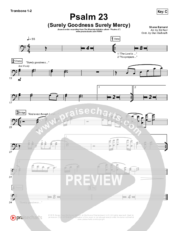 Psalm 23 (Surely Goodness) Trombone Sheet Music PDF (Shane & Shane / The Worship Initiative)