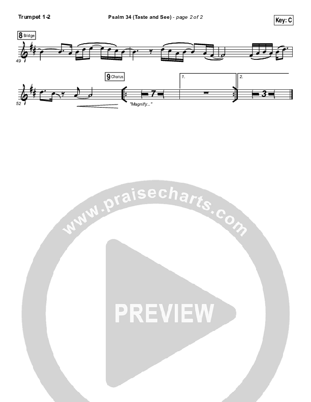 Download the Orchestration brass parts for Psalm 34 (Taste and See) by Shane & Shane / The Worship Initiative, from the album Psalms 2. This song was arranged by Grant Wall / Daniel Galbraith in the key of C, D.