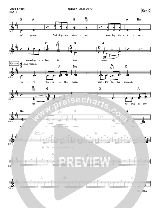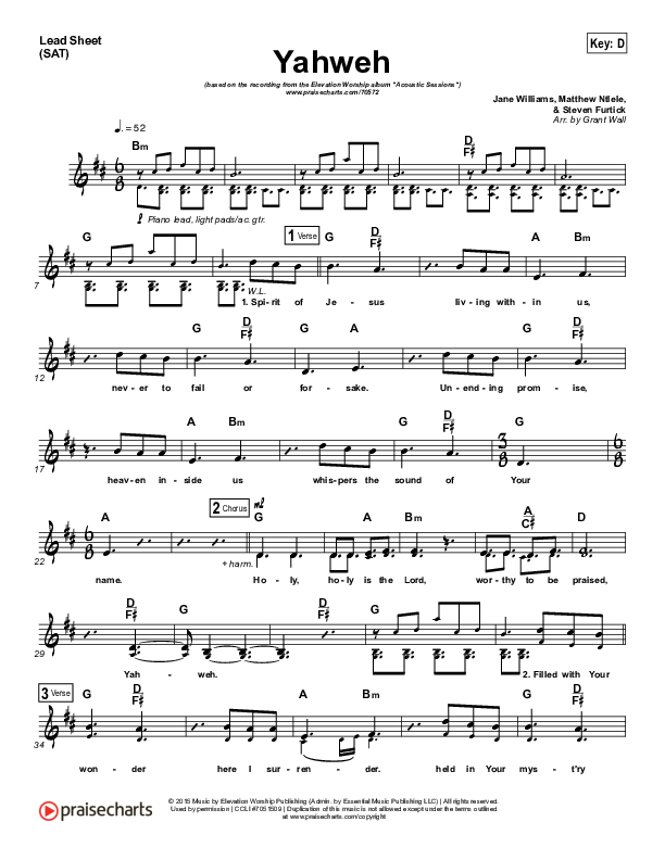 Download the sheet music for Yahweh (Acoustic) by Elevation Worship, from the album Acoustic Sessions. This song was arranged by Grant Wall in the key of C, D.