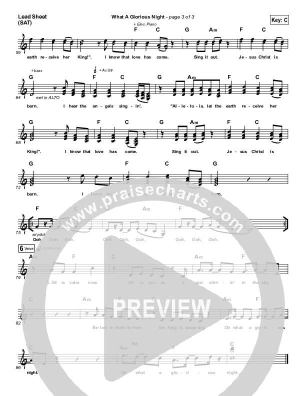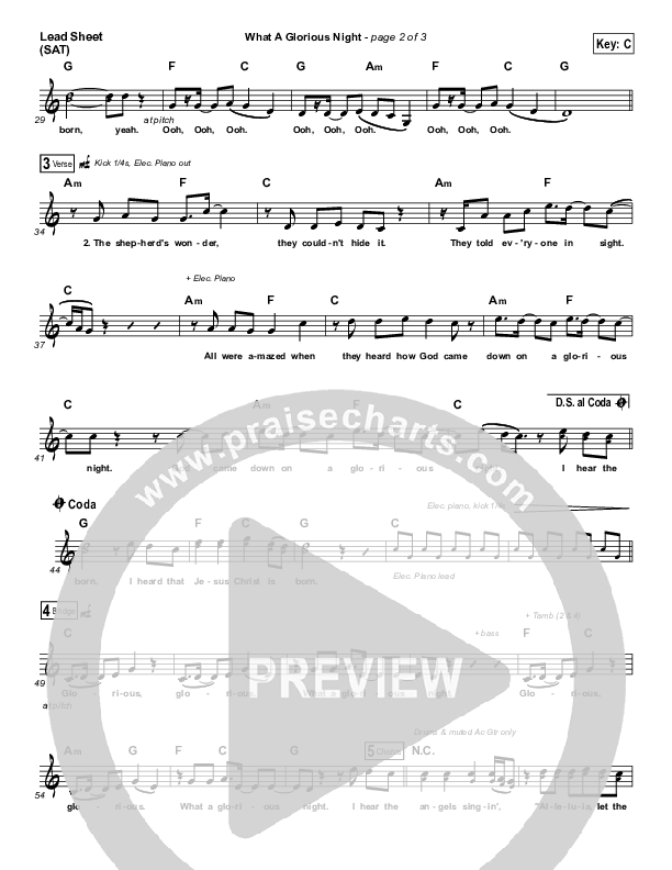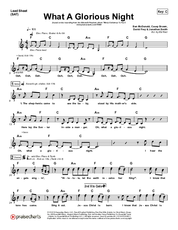 Download the sheet music for What A Glorious Night (Acoustic) by Sidewalk Prophets, from the album Merry Christmas To You. This song was arranged by Ed Kerr in the key of B, C.