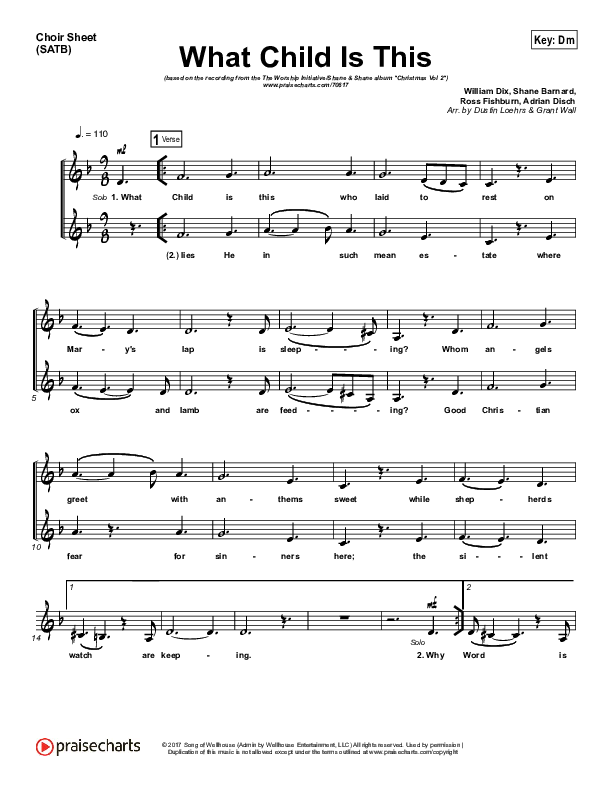 Download the Choir Sheet for What Child Is This by The Worship Initiative / Shane & Shane, from the album A Worship Initiative Christmas Volume 2. This song was arranged by Dustin Loehrs in the key of Dm, Ebm.