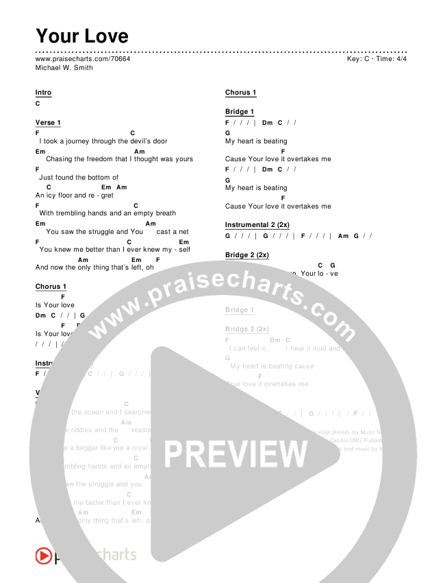 Download the PDF Chord Charts for Your Love by Michael W. Smith, from the album A Million Lights.