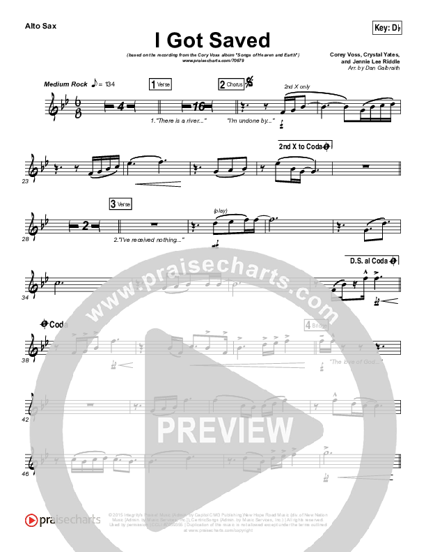 I Got Saved Alto Sax Sheet Music PDF (Corey Voss / Crystal Yates)