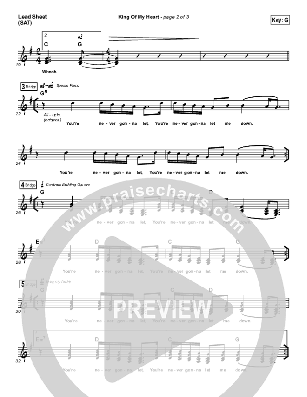 Download the sheet music for King Of My Heart by Michael W. Smith, from the album Surrounded. This song was arranged by Dave Iula in the key of E, G.