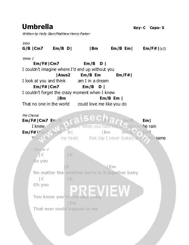 Download the PDF Chord Charts for Umbrella by Holly Starr, from the album Human.