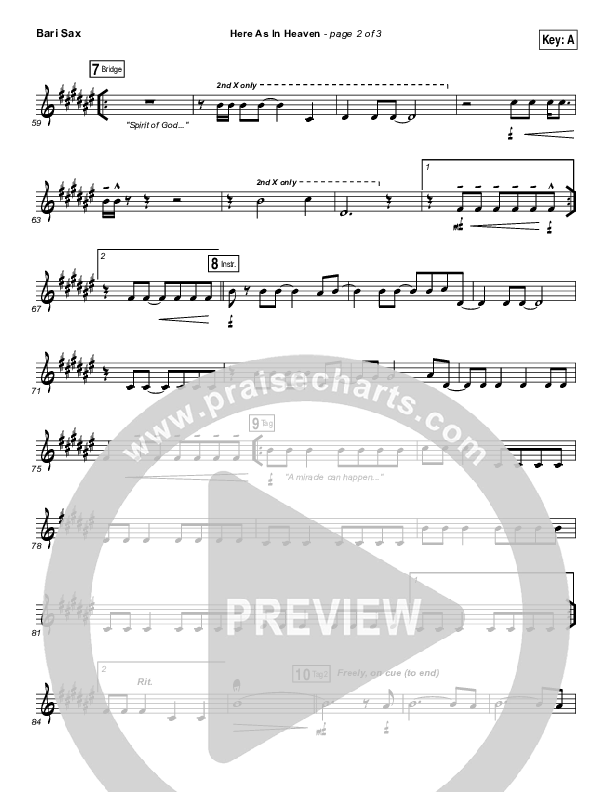 Here As In Heaven Bari Sax Sheet Music PDF (Elevation Collective / Tasha Cobbs Leonard)