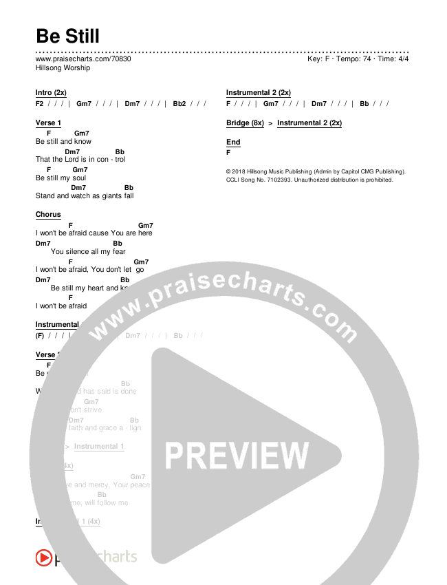 Be Still Chords PDF (Hillsong Worship)