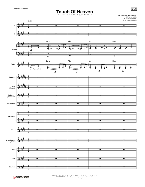 Download the Orchestration for Touch Of Heaven by Hillsong Worship, from the album There Is More. This song was arranged by Jared Haschek / Daniel Galbraith in the key of A, G.