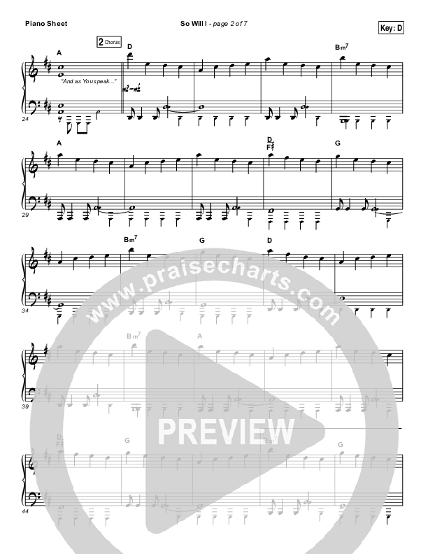 So Will I (100 Billion X) (Live) Sheet Music PDF (Hillsong Worship)
