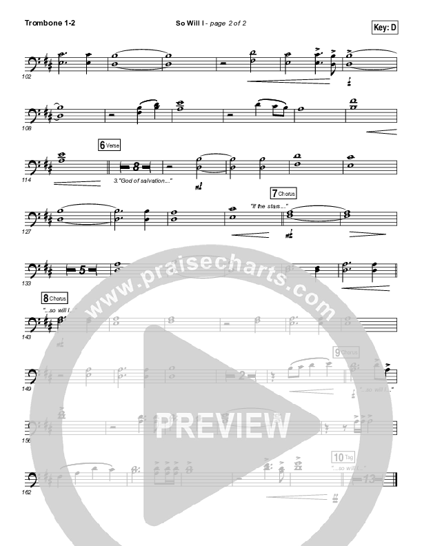 So Will I (100 Billion X) (Live) Trombone Sheet Music PDF (Hillsong Worship)