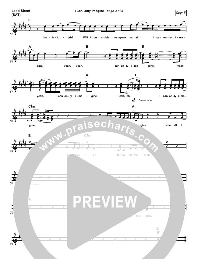 Download the sheet music for I Can Only Imagine (The Movie Session) by MercyMe, from the album I Can Only Imagine - The Very Best Of Mercy Me. This song was arranged by Ed Kerr in the key of D, E.