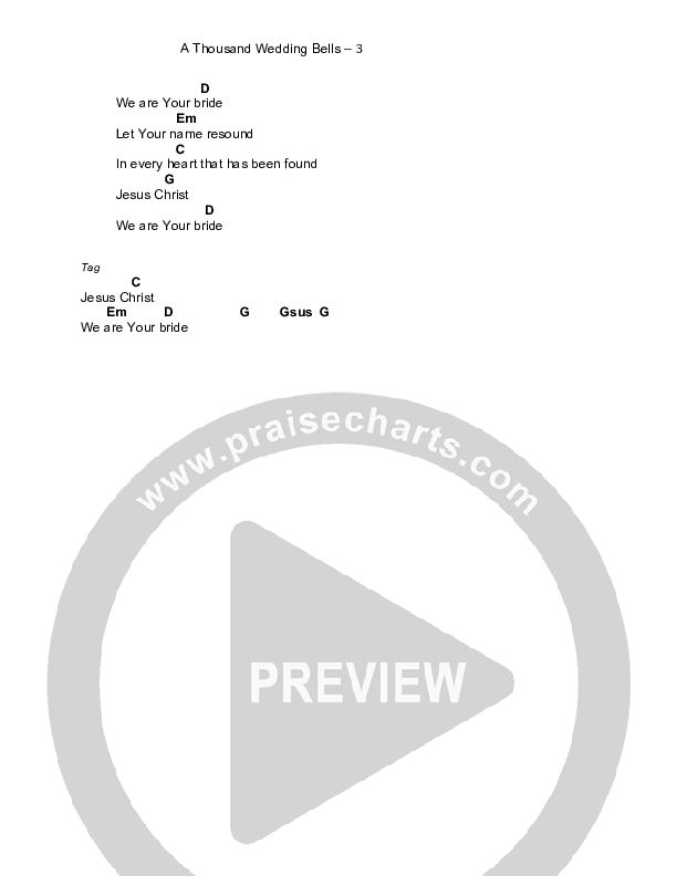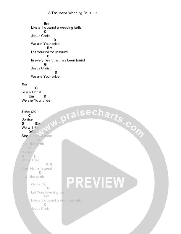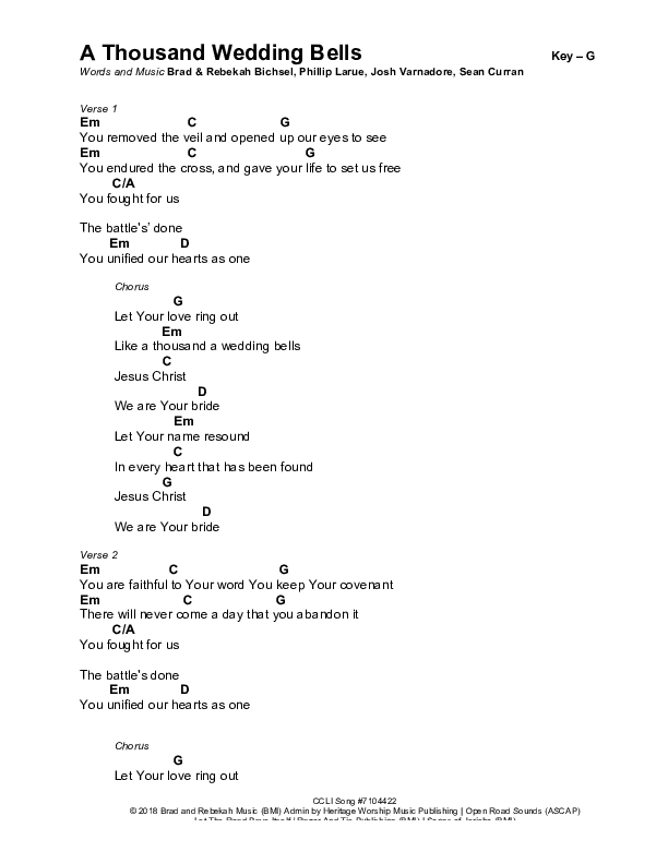 Download the PDF Chord Charts for A Thousand Wedding Bells by Brad & Rebekah, from the album Sound Of Heaven.