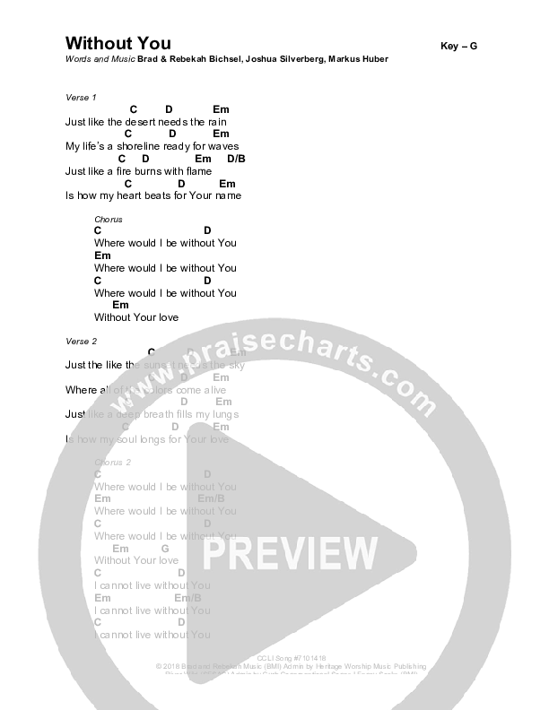 Download the PDF Chord Charts for Without You by Brad & Rebekah, from the album Sound Of Heaven.