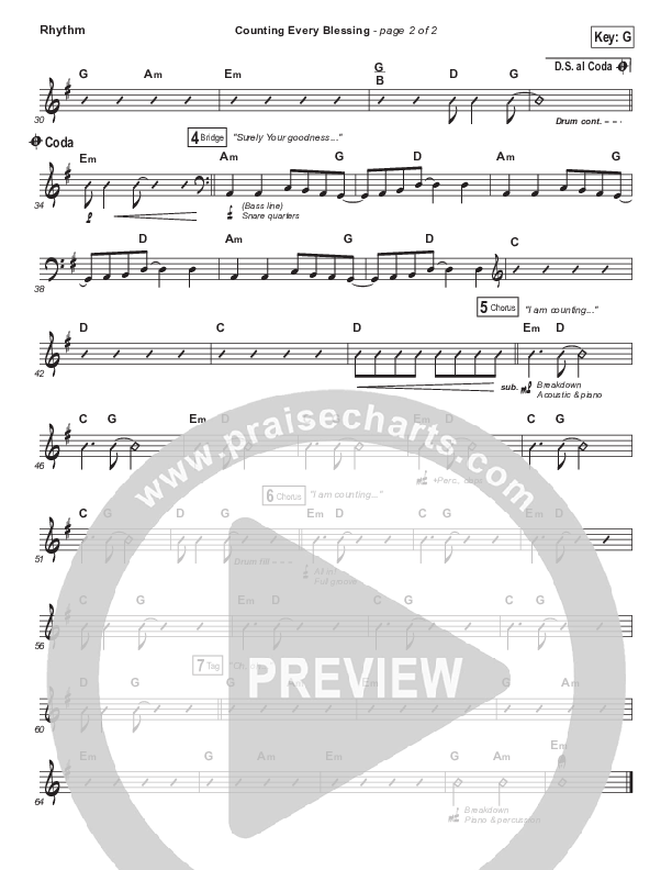 Download the Rhythm Chart for Counting Every Blessing by Rend Collective, from the album Good News. This song was arranged by Dustin Loehrs / Daniel Galbraith in the key of A, Ab, G.