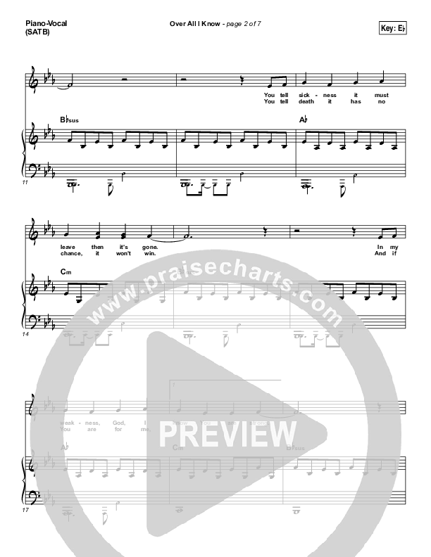 Download the sheet music for Over All I Know by Vertical Worship, from the album Bright Faith Bold Future. This song was arranged by Ed Kerr / Daniel Galbraith in the key of E, Eb.